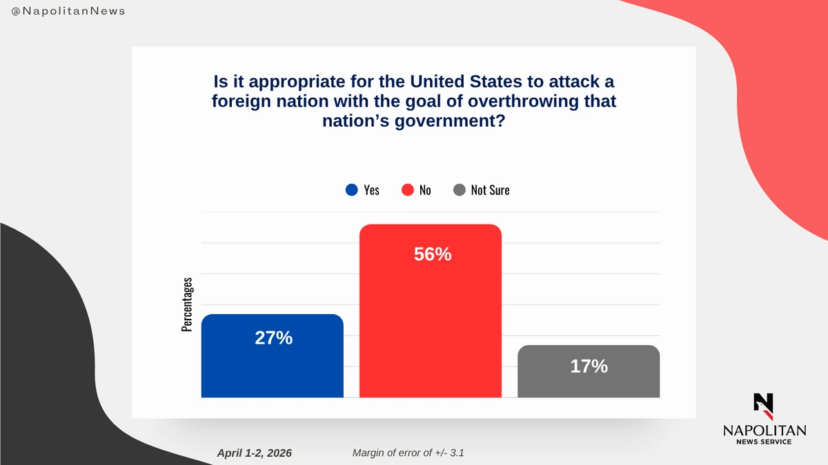 This data is from a Napolitan News Service survey of 1,000 Registered Voters conducted online by Scott Rasmussen, April 1-2, 2026. RMG Research, Inc., conducted the field work for the survey. It has a margin of error of +/- 3.1.