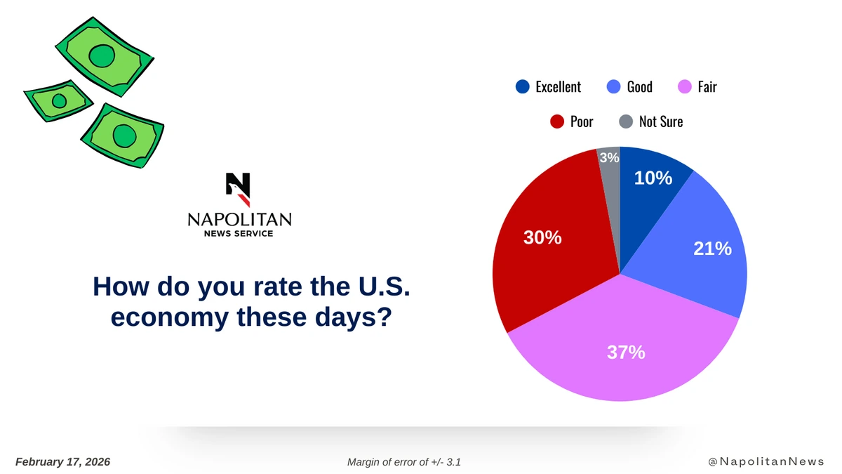 This data is from a Napolitan News Service survey of 1,000 Registered Voters conducted online by Scott Rasmussen, February 17, 2026. RMG Research, Inc., conducted the field work for the survey. It has a margin of error of +/- 3.1.