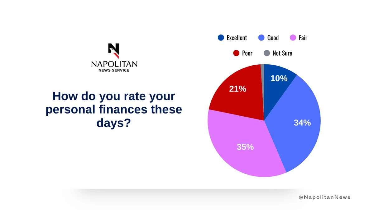 • Forty-four percent (44%) of voters rate their personal finances as Good or Excellent.