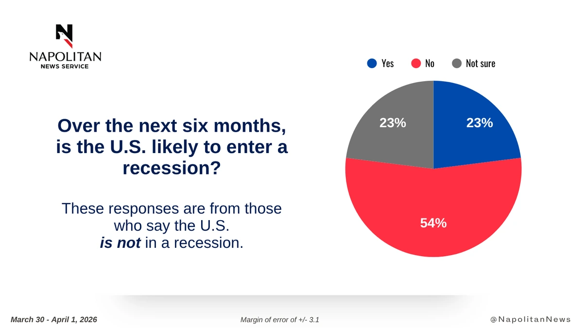 This data is from a Napolitan News Service survey of 1,000 Registered Voters conducted online by Scott Rasmussen, March 30-31, 2026. RMG Research, Inc., conducted the field work for the survey. It has a margin of error of +/- 3.1.