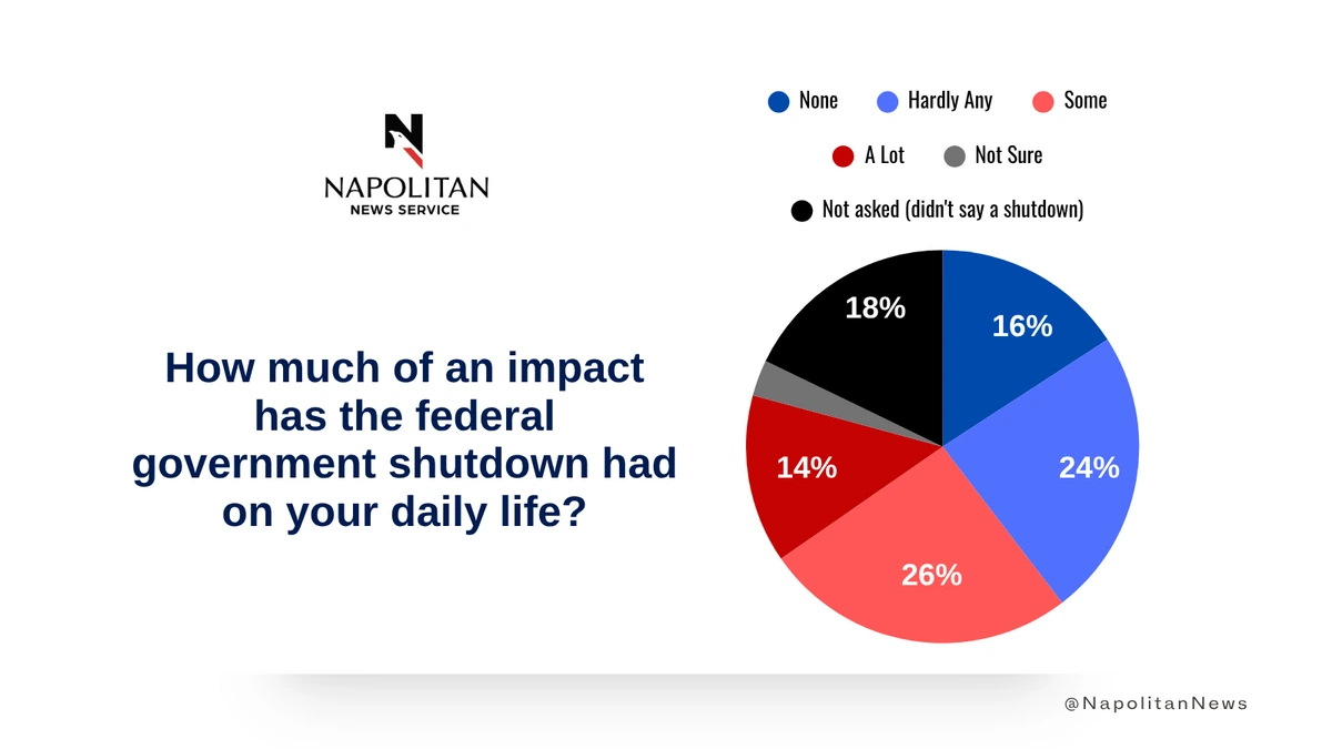 • As the shutdown might be coming to a close, 40% of registered voters now report at least feeling Some impact from the shutdown that began on October 1st.