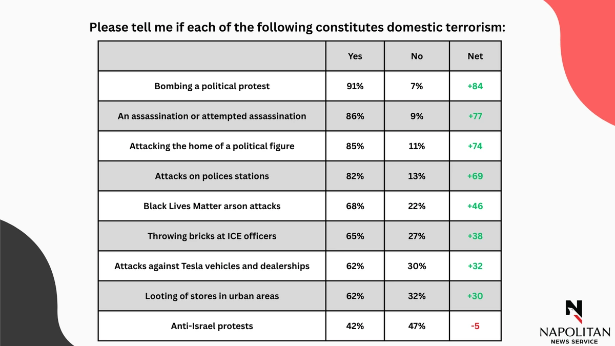 • Main Street Voters are split: 45% say it should be called domestic terrorism, and 41% say it should not be.