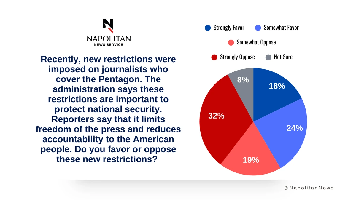 • Forty-two percent (42%) of voters favor the new restrictions the Pentagon has placed on journalists, while 51% are opposed.