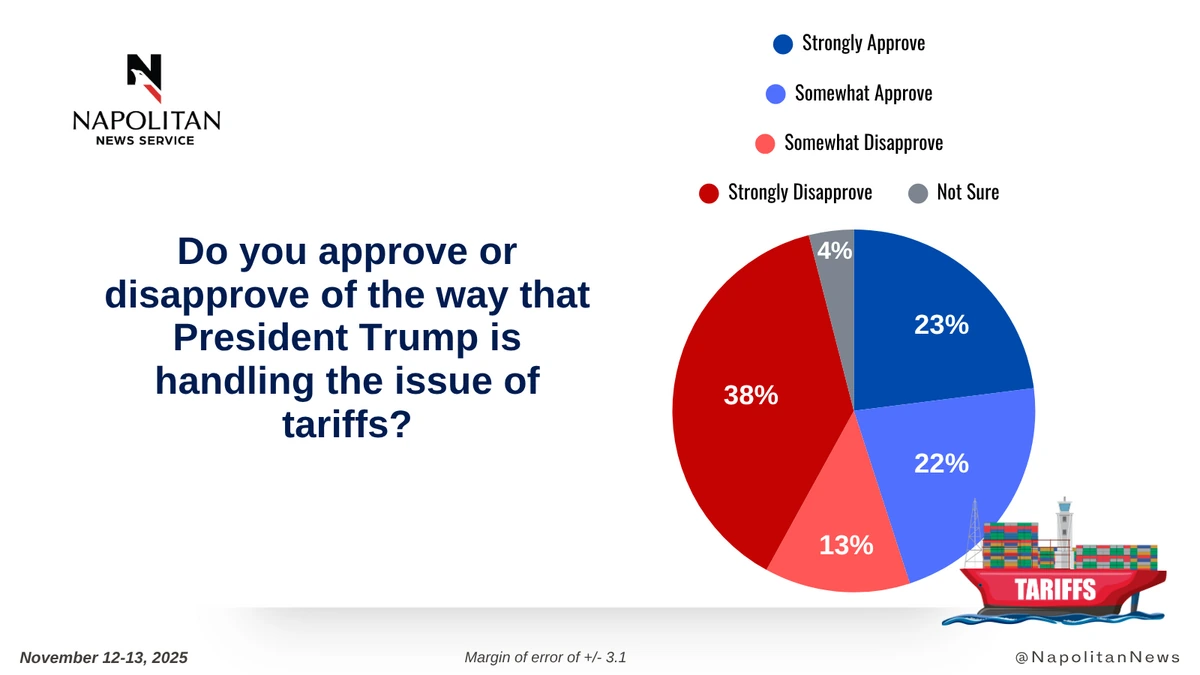 This data is from a Napolitan News Service survey of 1,000 Registered Voters conducted online by Scott Rasmussen, November 12-13, 2025. RMG Research, Inc., conducted the field work for the survey. It has a margin of error of +/- 3.1.