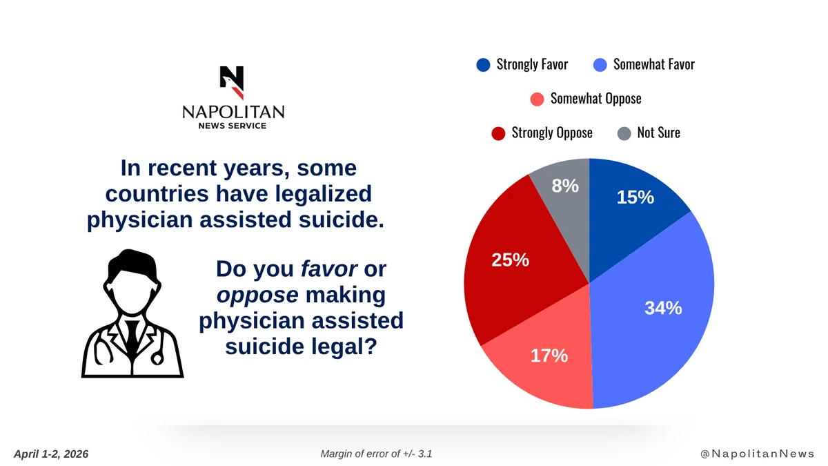 • Forty-two percent (42%) Oppose legalizing physician-assisted suicide.