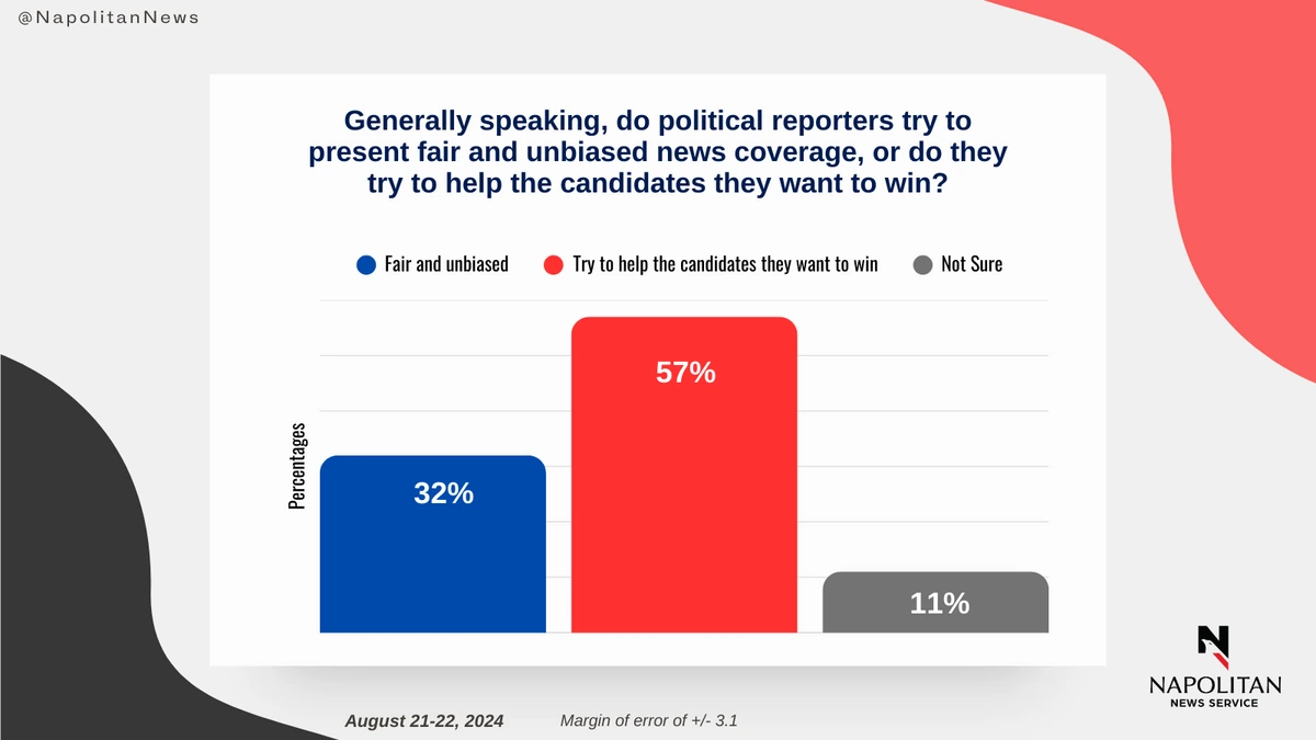 • In August 2024, Napolitan News surveyed registered voters to learn whether they think political reporters are biased.