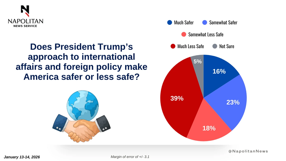 This data is from a Napolitan News Service survey of 1,000 Registered Voters conducted online by Scott Rasmussen, January 13-14, 2026. RMG Research, Inc., conducted the field work for the survey. It has a margin of error of +/- 3.1.