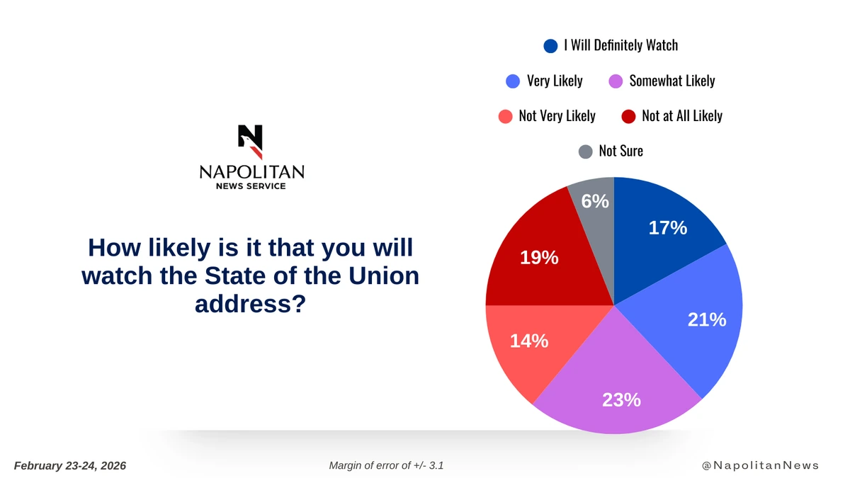 This data is from a Napolitan News Service survey of 1,000 Registered Voters conducted online by Scott Rasmussen, February 23-24, 2026, YYYY. RMG Research, Inc., conducted the field work for the survey. It has a margin of error of +/- 3.1.