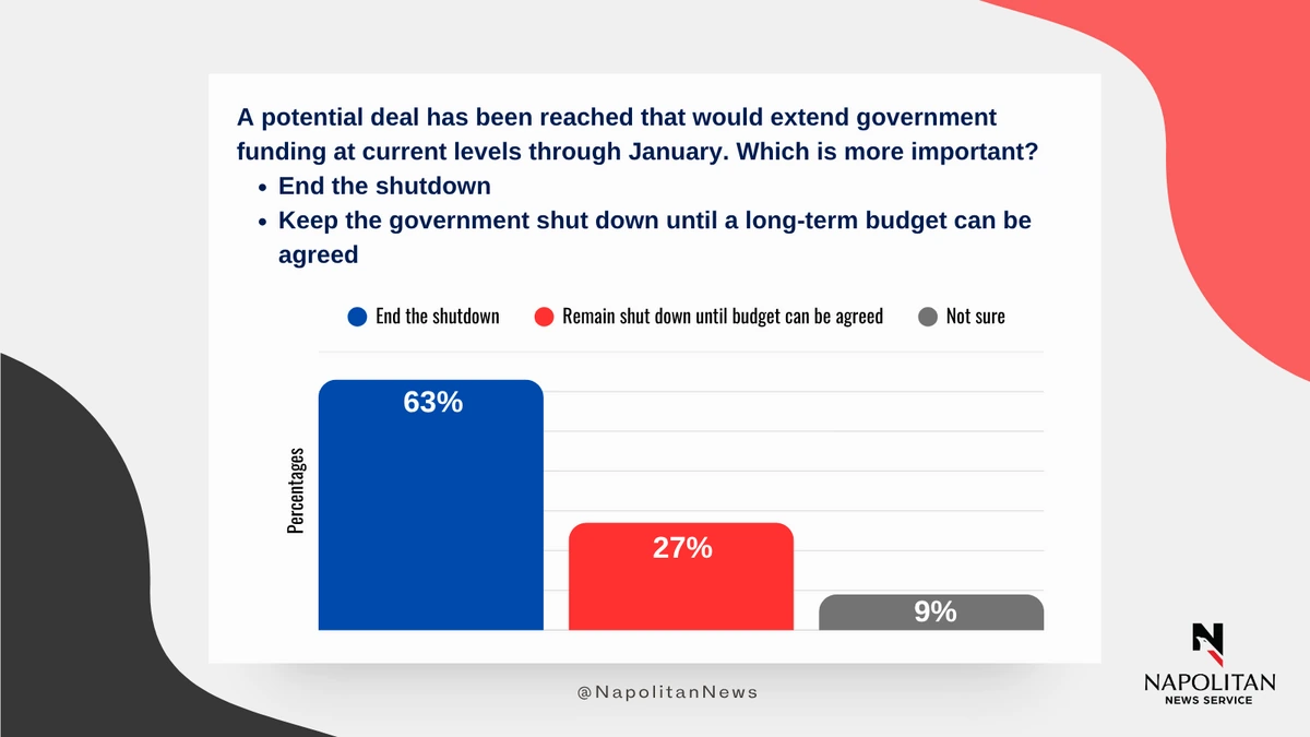 This data is from a Napolitan News Service survey of 1,000 Registered Voters conducted online by Scott Rasmussen, November 10-11, 2025. RMG Research, Inc., conducted the field work for the survey. It has a margin of error of +/- 3.1.