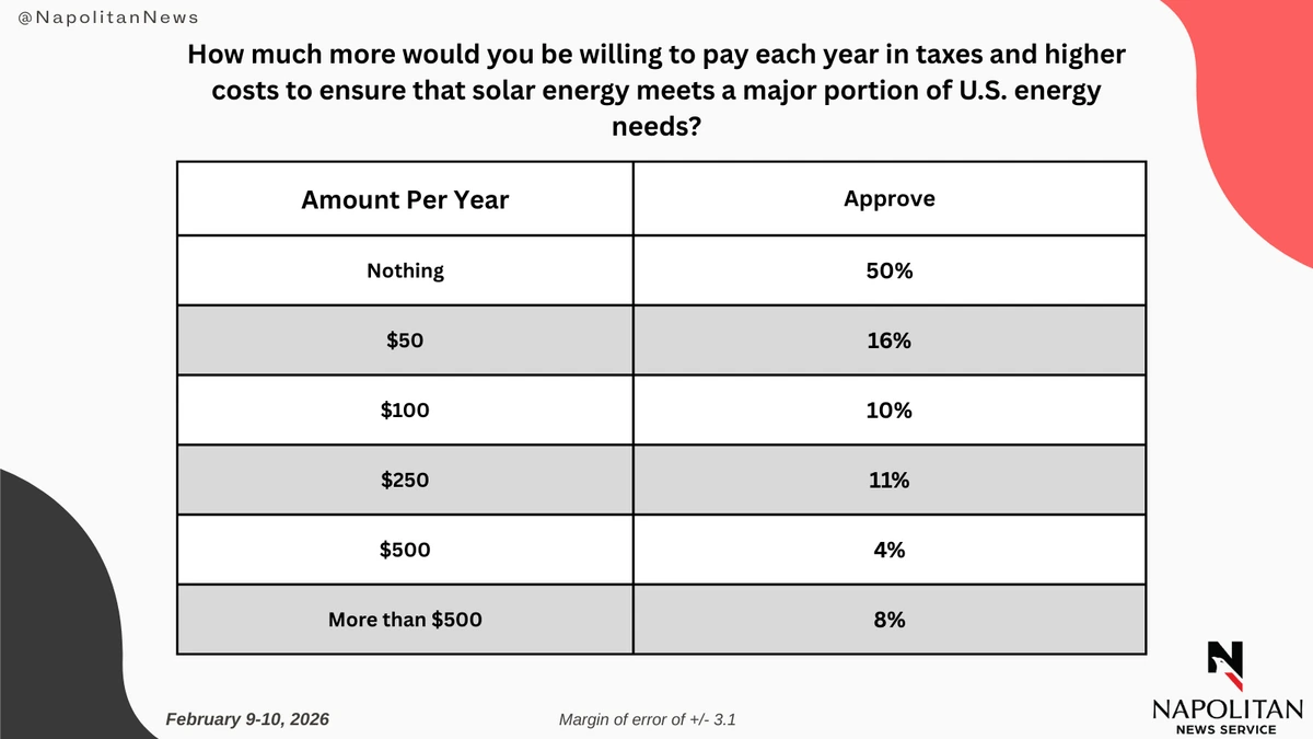 This data is from a Napolitan News Service survey of 1,000 Registered Voters conducted online by Scott Rasmussen, February 9-10, 2026. RMG Research, Inc., conducted the field work for the survey. It has a margin of error of +/- 3.1.