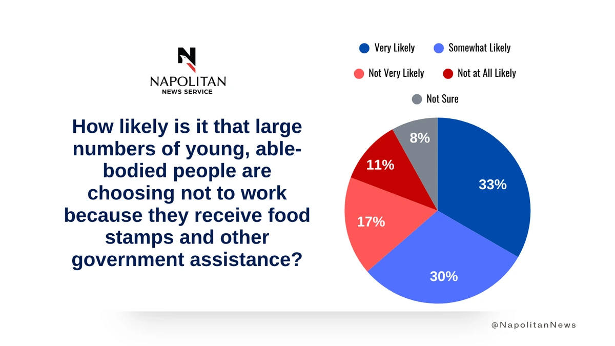 • Finally, nearly two thirds (63%) of voters say it is at least Somewhat Likely that large numbers of able-bodied people are choosing not to work because they receive food stamps and other government assistance.