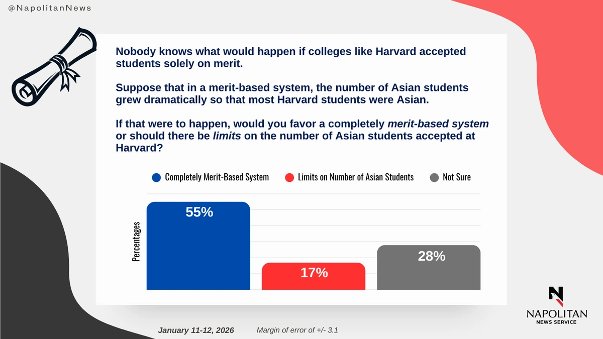 • Even if, under a merit-based system, the number of Asian students grew dramatically so that most Harvard students were Asian, 55% would still favor a completely merit-based system.