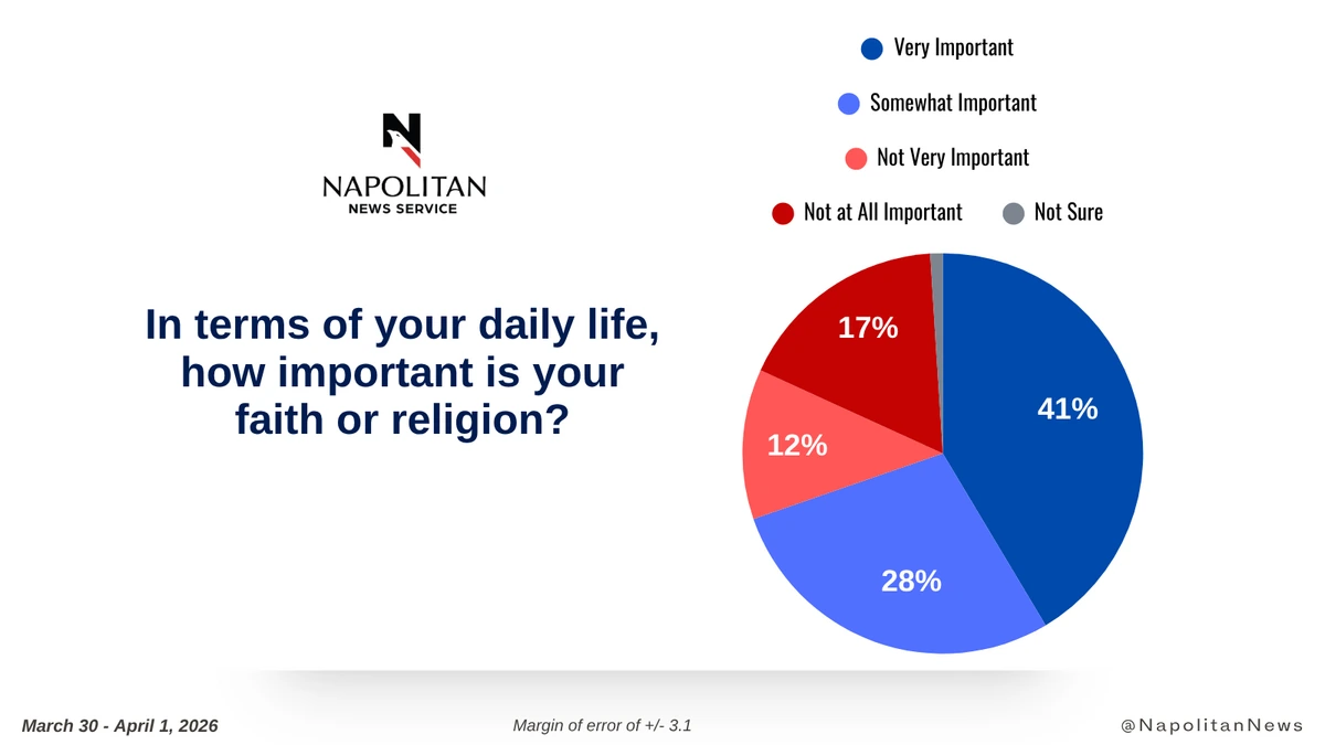 This data is from a Napolitan News Service survey of 1,000 Registered Voters conducted online by Scott Rasmussen, March 30-31, 2026. RMG Research, Inc., conducted the field work for the survey. It has a margin of error of +/- 3.1.