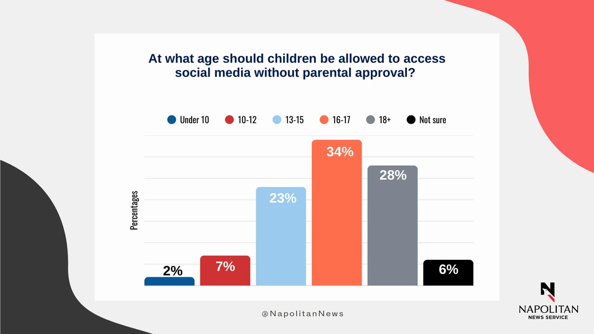 • When asked what age children should be allowed to access social media, a majority of voters (62%) think that by the time children are 16 or 17 years old, they should be able to decide.