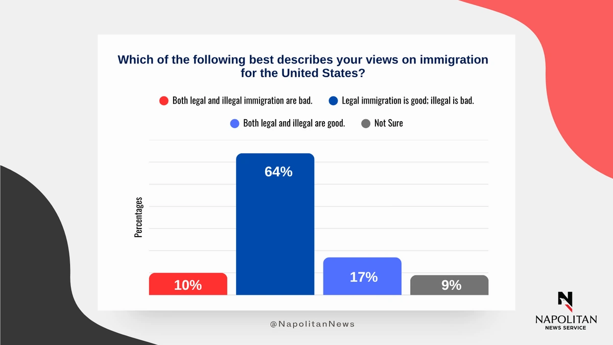 • As has been the case for decades, approximately 80% of voters say legal immigration is good for the United States, while a similar number say illegal immigration is bad for the country.