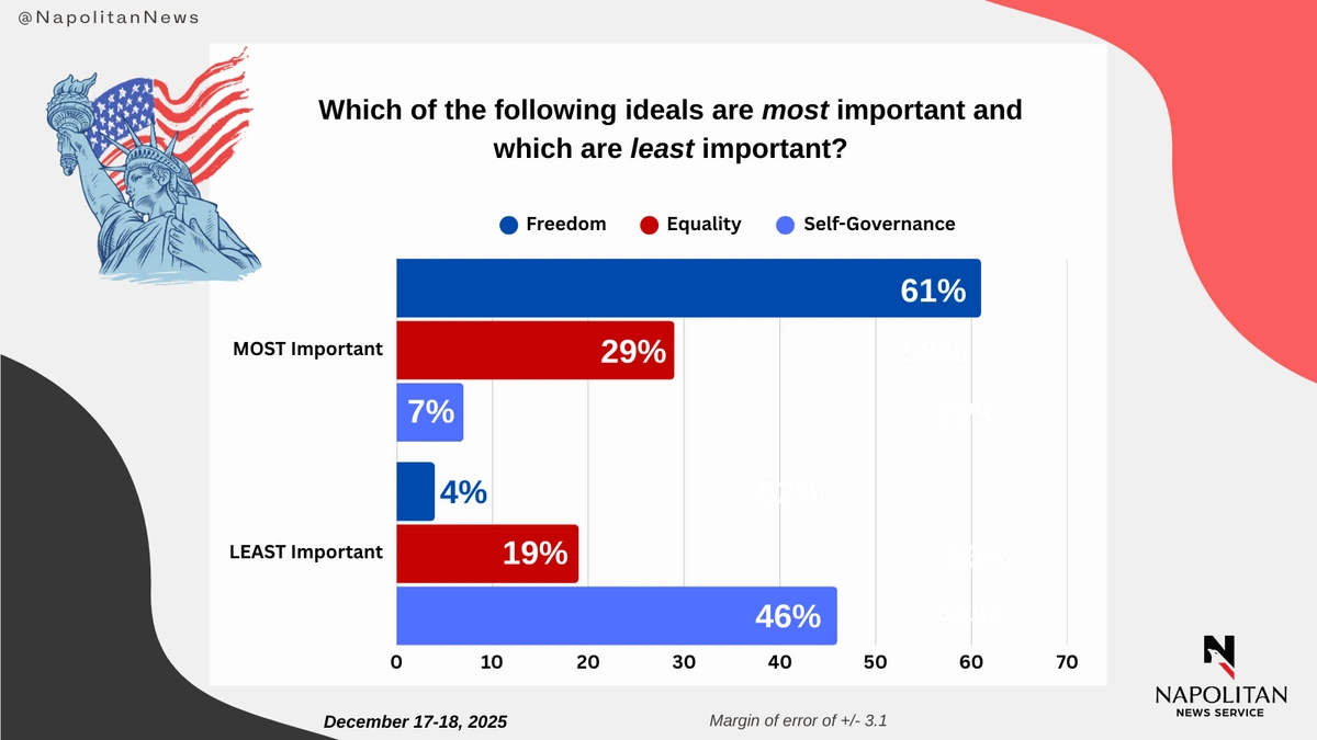 This data is from a Napolitan News Service survey of 1,000 Registered Voters conducted online by Scott Rasmussen, December 17-18, 2025. RMG Research, Inc., conducted the field work for the survey. It has a margin of error of +/- 3.1.