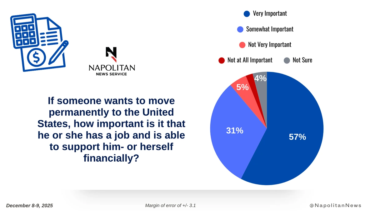 • If someone wants to move permanently to the United States, 88% of voters say it is important that they have a job and can support themselves financially.
