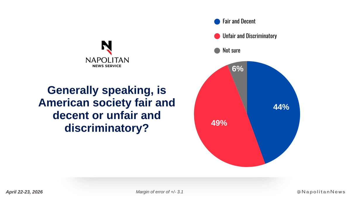 • Perceptions of American society continue to be pessimistic, as just 44% of voters say that it is generally Fair and Decent.