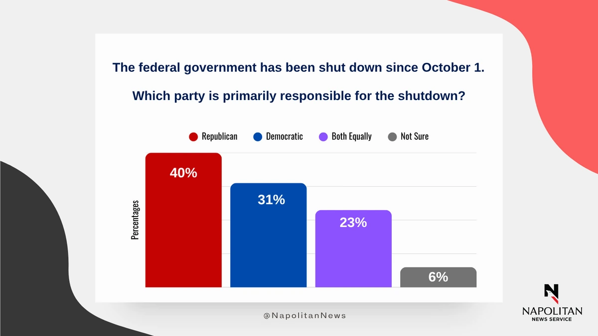 The most recent data cited is from a Napolitan News Service survey of 1,000 Registered Voters conducted online by Scott Rasmussen, October 6-7, 2025. Field work for the survey was conducted by RMG Research, Inc. and has a margin of error of +/- 3.1.