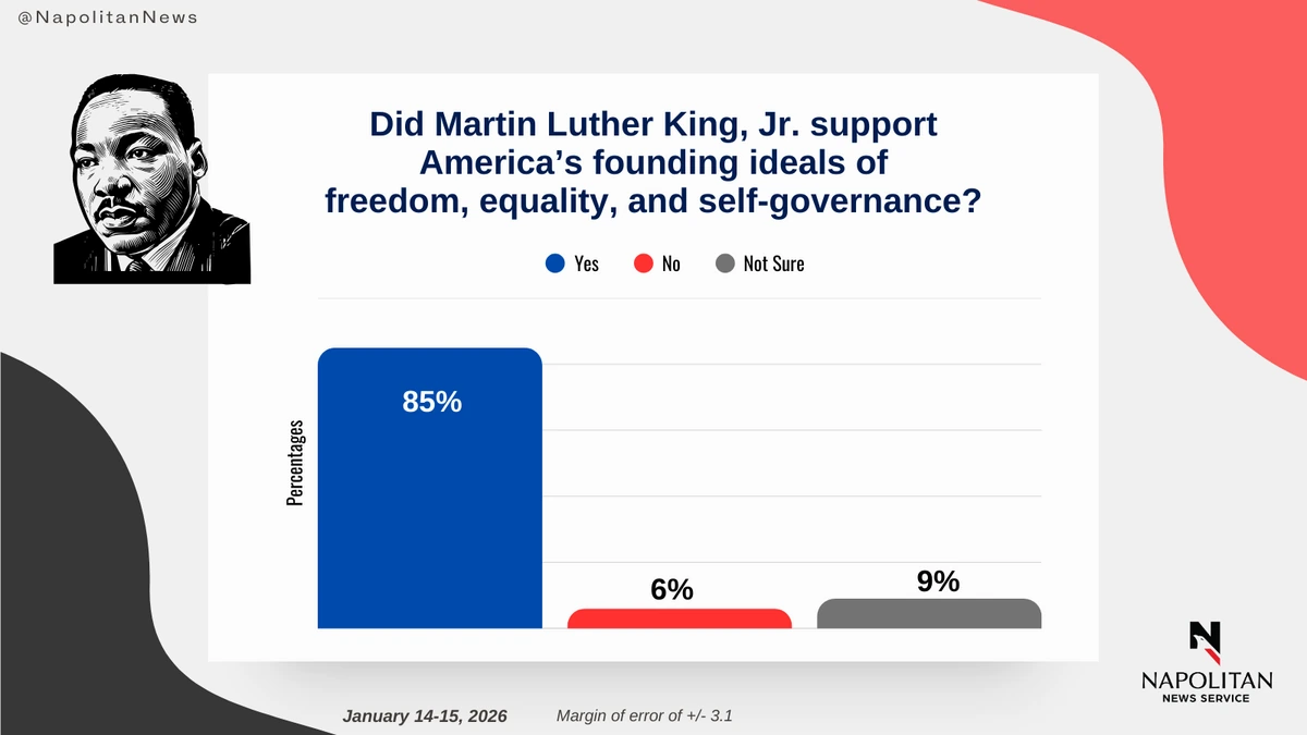 • Eighty-five percent (85%) also believe that Martin Luther King, Jr., supported America's founding ideals of freedom, equality, and self-governance.