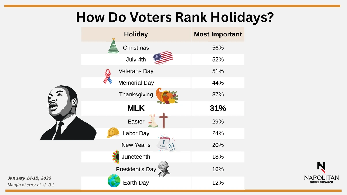 • Overall, 31% of voters consider MLK Day one of our nation's Most Important holidays.