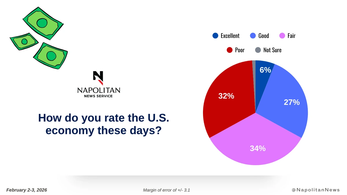 This data is from a Napolitan News Service survey of 1,000 Registered Voters conducted online by Scott Rasmussen, February 2-3, 2026. RMG Research, Inc., conducted the field work for the survey. It has a margin of error of +/- 3.1.