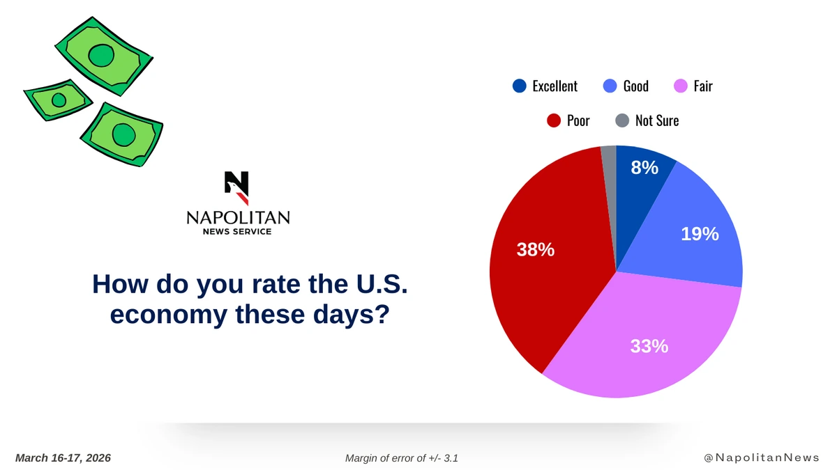 This data is from a Napolitan News Service survey of 1,000 Registered Voters conducted online by Scott Rasmussen, March 16-17, 2026. RMG Research, Inc., conducted the field work for the survey. It has a margin of error of +/- 3.1.