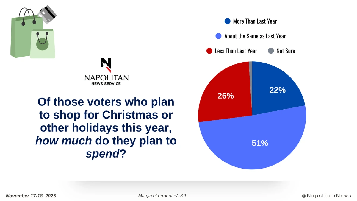 This data is from a Napolitan News Service survey of 1,000 Registered Voters conducted online by Scott Rasmussen, November 17-18, 2025. RMG Research, Inc., conducted the field work for the survey. It has a margin of error of +/- 3.1.