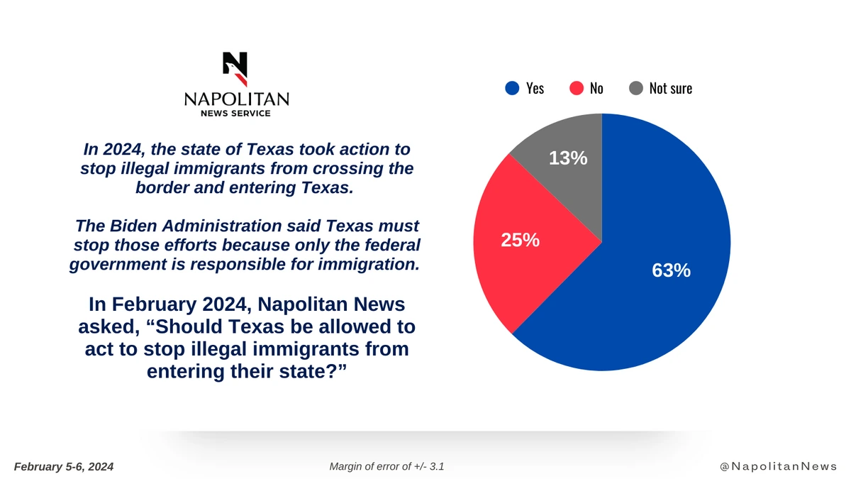• Sixty-three percent (63%) said Texas should be allowed to act to stop illegal immigrants from entering their state.