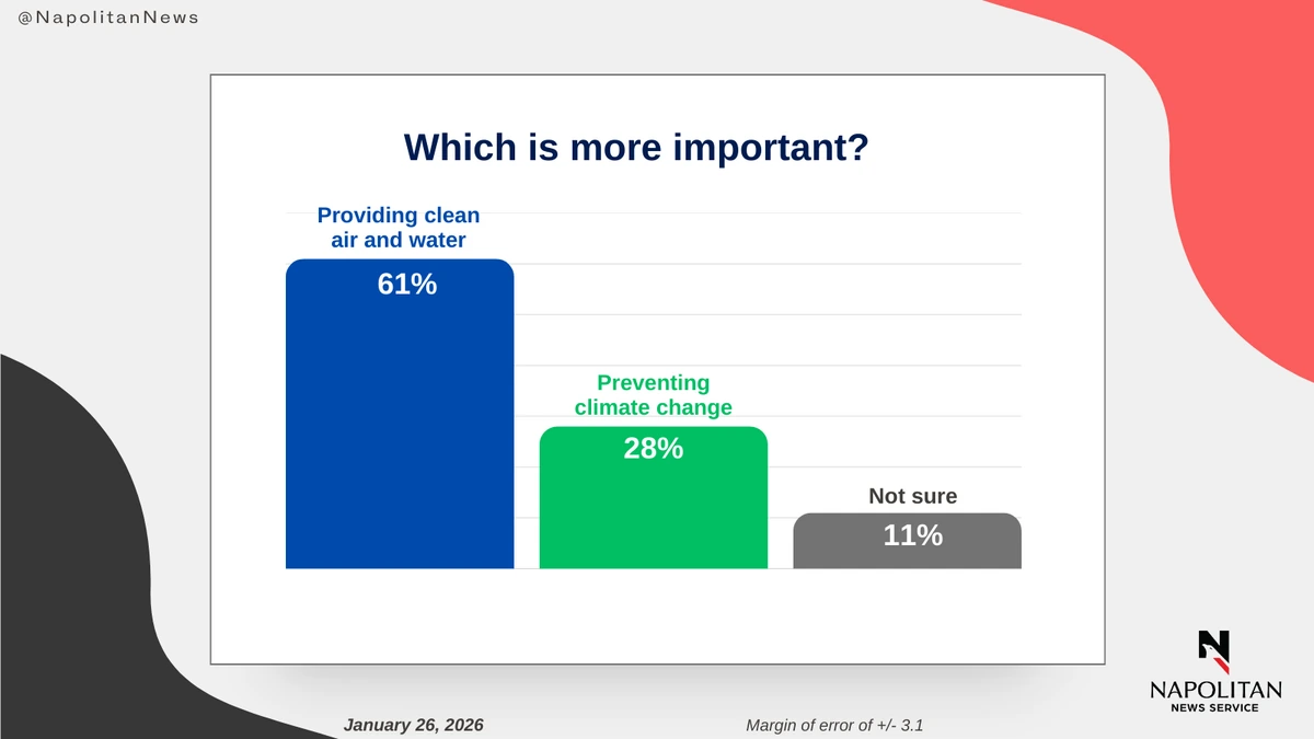 • Six in 10 voters (61%) say providing clean air and water is more important than preventing climate change.