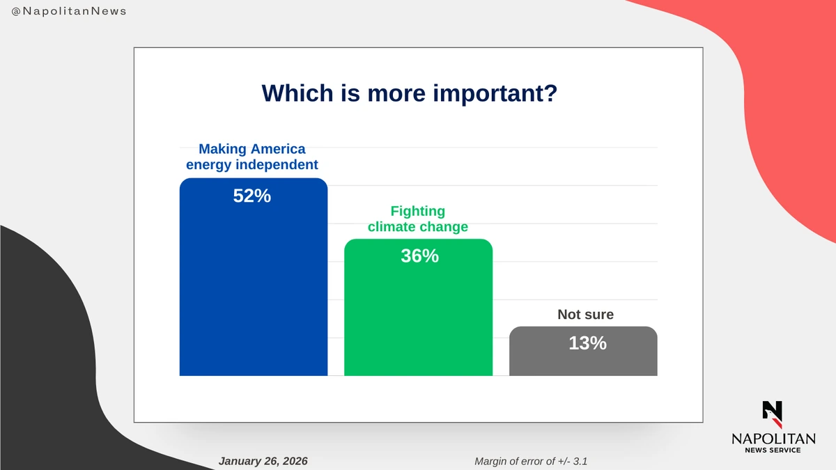 This data is from a Napolitan News Service survey of 1,000 Registered Voters conducted online by Scott Rasmussen, January 26, 2026. RMG Research, Inc., conducted the field work for the survey. It has a margin of error of +/- 3.1.