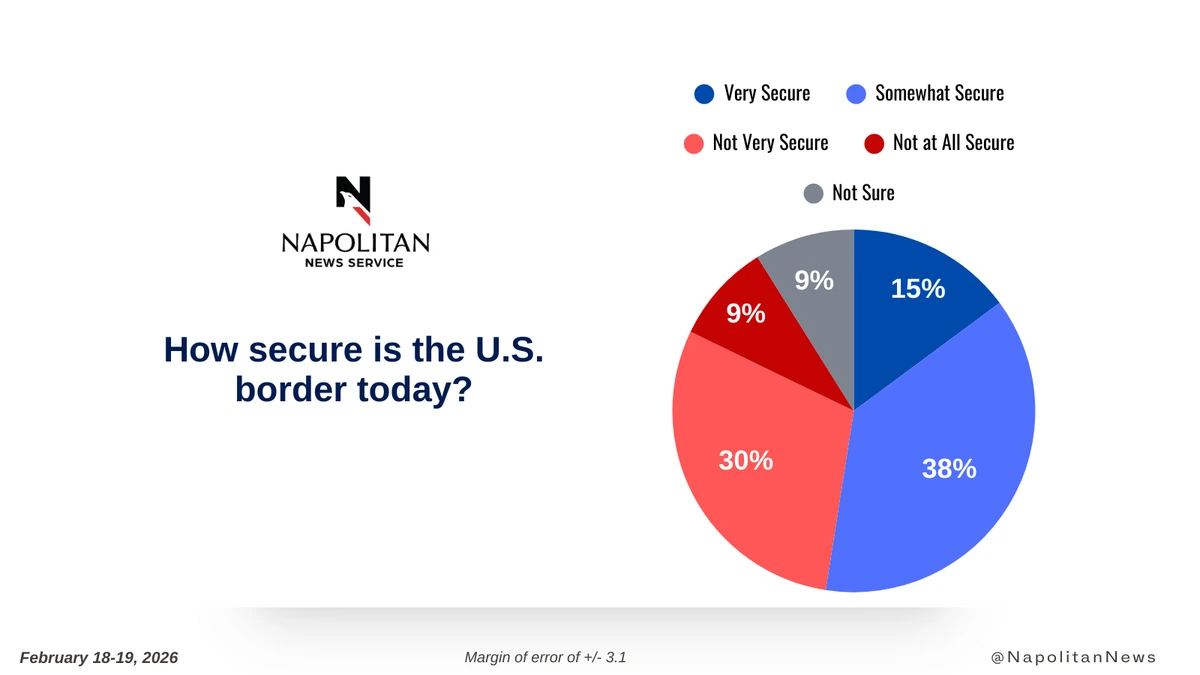 This data is from a Napolitan News Service survey of 1,000 Registered Voters conducted online by Scott Rasmussen, February 18-19, 2026. RMG Research, Inc., conducted the field work for the survey. It has a margin of error of +/- 3.1.