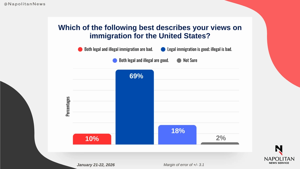This data is from a Napolitan News Service survey of 1,000 Registered Voters conducted online by Scott Rasmussen, January 21-22, 2026. RMG Research, Inc., conducted the field work for the survey. It has a margin of error of +/- 3.1.