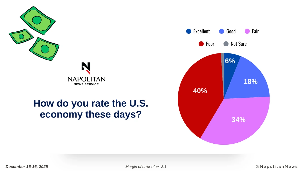 This data is from a Napolitan News Service survey of 1,000 Registered Voters conducted online by Scott Rasmussen, December 15-16, 2025. RMG Research, Inc., conducted the field work for the survey. It has a margin of error of +/- 3.1.