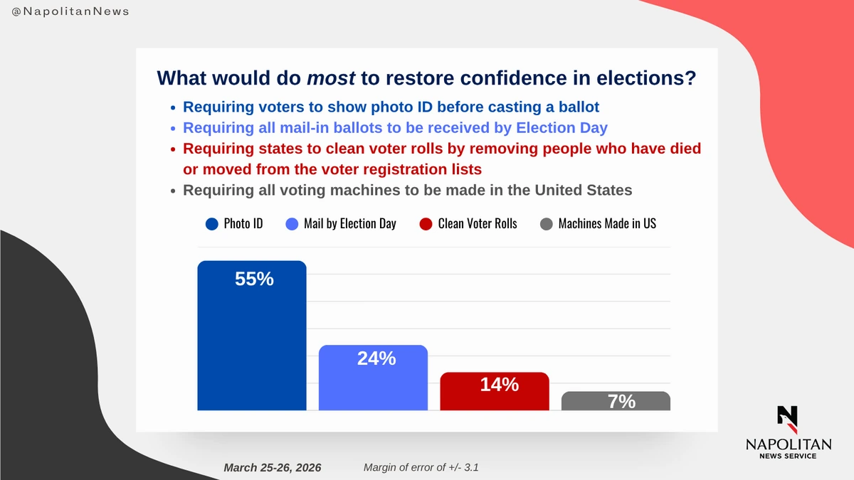 • As election integrity and the SAVE Act continue to make headlines, it's not just Photo ID that voters want to see implemented: