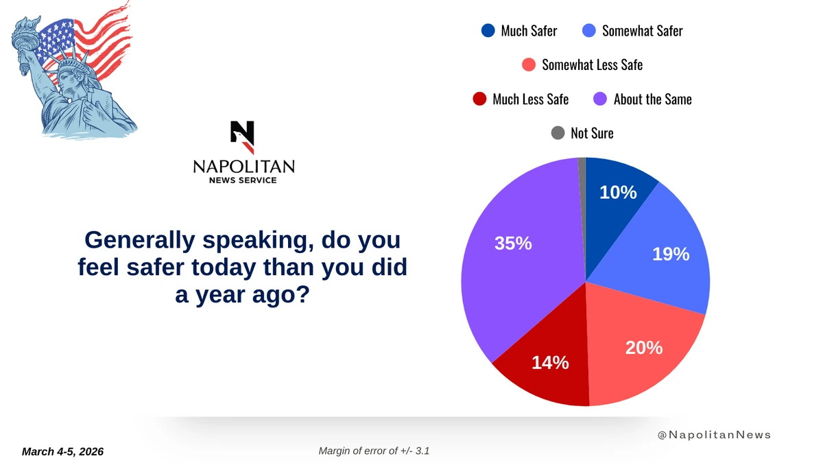 This data is from a Napolitan News Service survey of 1,000 Registered Voters conducted online by Scott Rasmussen, March 4-5, 2026. RMG Research, Inc., conducted the field work for the survey. It has a margin of error of +/- 3.1.