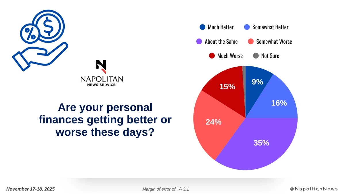 • This is the most pessimistic voters have been since before the 2024 election, when 25% said their finances were getting better and 41% said worse.