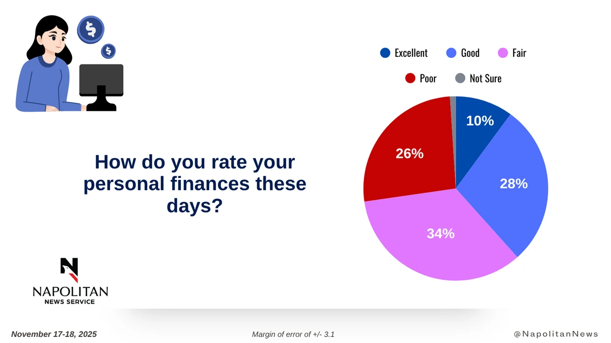 This data is from a Napolitan News Service survey of 1,000 Registered Voters conducted online by Scott Rasmussen, November 17-18, 2025. RMG Research, Inc., conducted the field work for the survey. It has a margin of error of +/- 3.1.