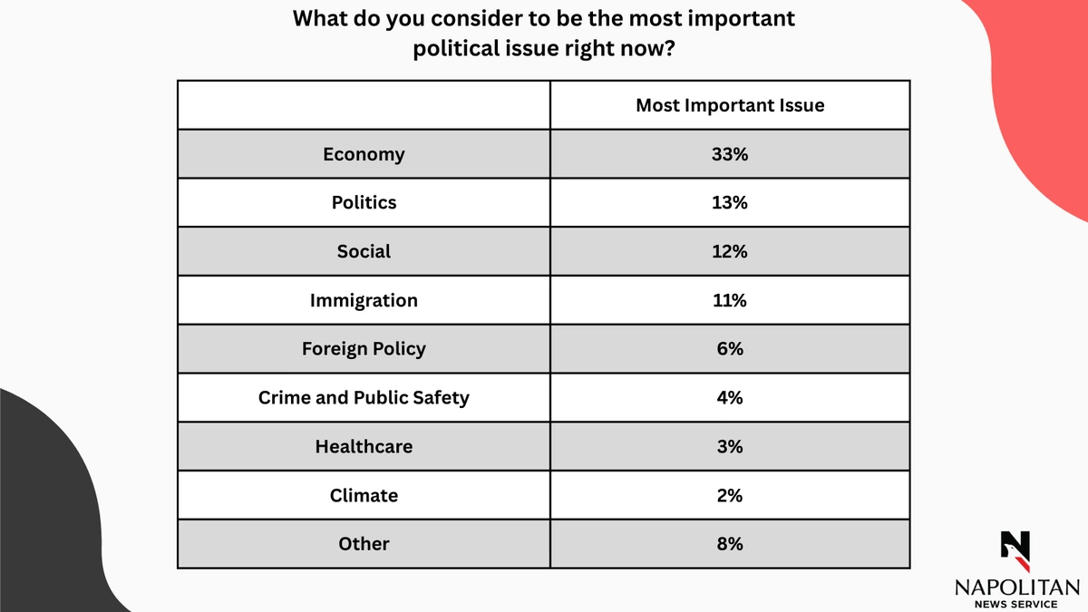 The Economy Stays on Top: 33% Rank It as Most Important Issue