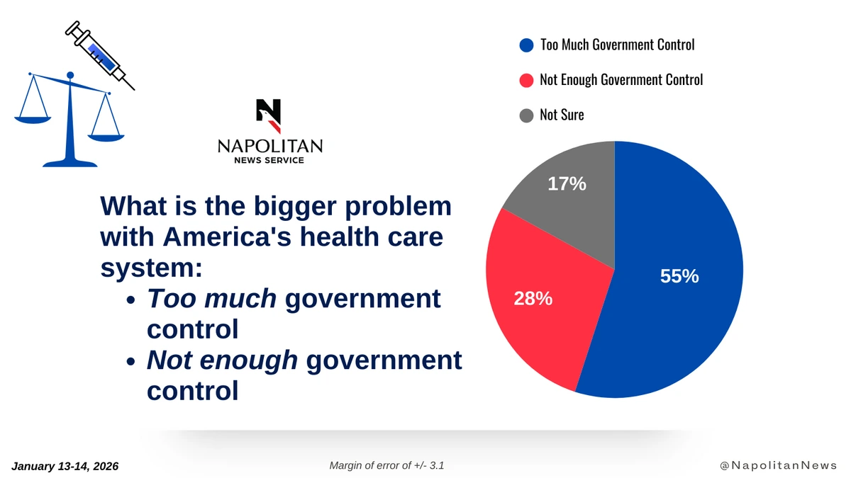 This data is from a Napolitan News Service survey of 1,000 Registered Voters conducted online by Scott Rasmussen, January 13-14, 2026. RMG Research, Inc., conducted the field work for the survey. It has a margin of error of +/- 3.1.