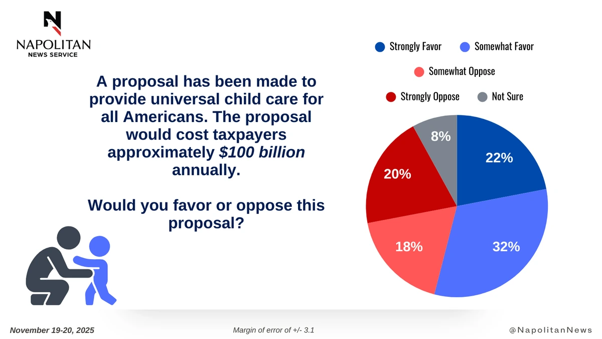 This data is from a Napolitan News Service survey of 1,000 Registered Voters conducted online by Scott Rasmussen, November 19-20, 2025. RMG Research, Inc., conducted the field work for the survey. It has a margin of error of +/- 3.1.