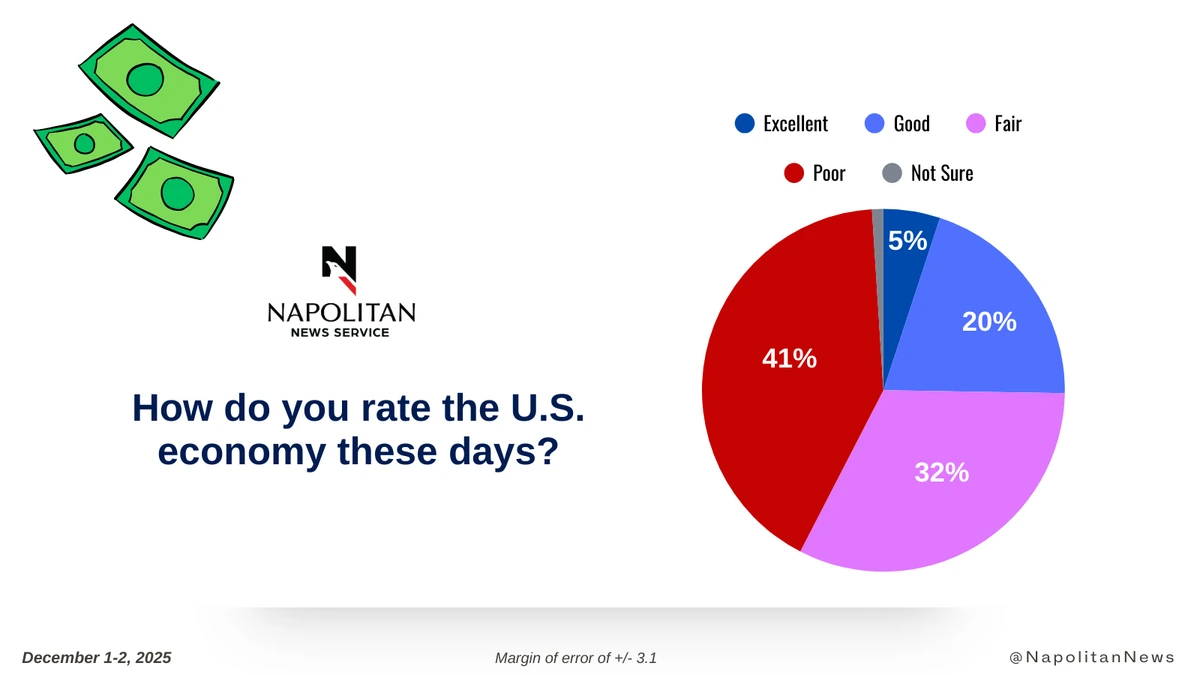 This data is from a Napolitan News Service survey of 1,000 Registered Voters conducted online by Scott Rasmussen, December 1-2, 2025. RMG Research, Inc., conducted the field work for the survey. It has a margin of error of +/- 3.1.