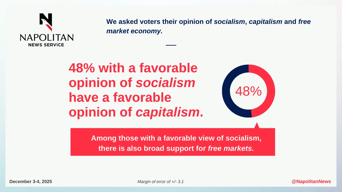 This data is from a Napolitan News Service survey of 1,000 Registered Voters conducted online by Scott Rasmussen, December 3-4, 2025. RMG Research, Inc., conducted the field work for the survey. It has a margin of error of +/- 3.1.