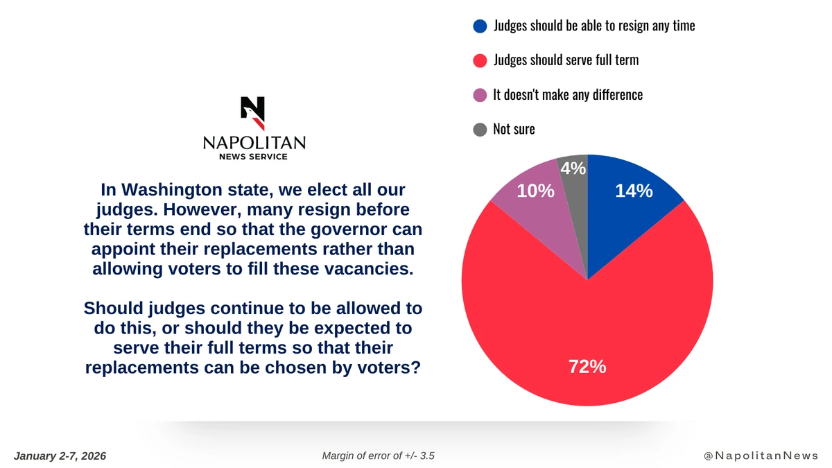 This data is from a Napolitan News Service survey of 800 Registered Voters in Washington State, conducted online by Scott Rasmussen, January 2-7, 2026. RMG Research, Inc., conducted the field work for the survey. It has a margin of error of +/- 3.1.