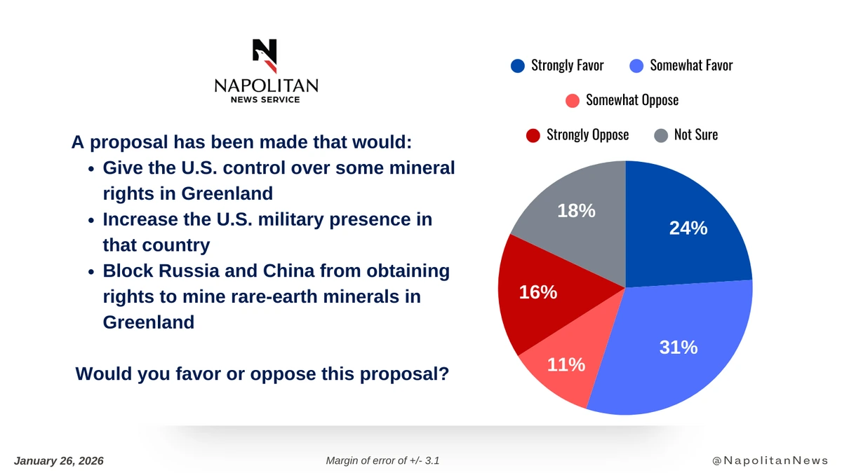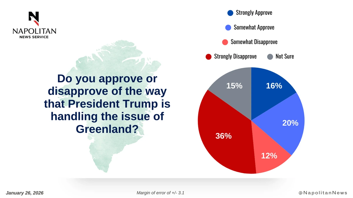 This data is from a Napolitan News Service survey of 1,000 Registered Voters conducted online by Scott Rasmussen, January 26, 2026. RMG Research, Inc., conducted the field work for the survey. It has a margin of error of +/- 3.1.