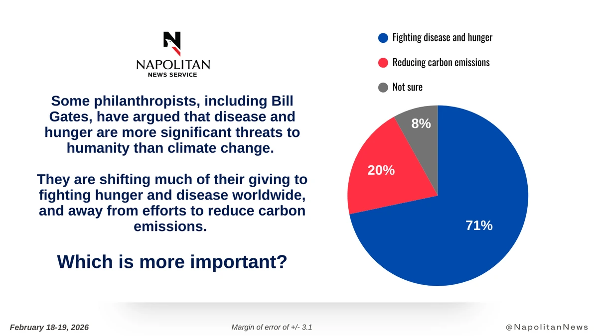 This data is from a Napolitan News Service survey of 1,000 Registered Voters conducted online by Scott Rasmussen, February 18-19, 2026. RMG Research, Inc., conducted the field work for the survey. It has a margin of error of +/- 3.1.